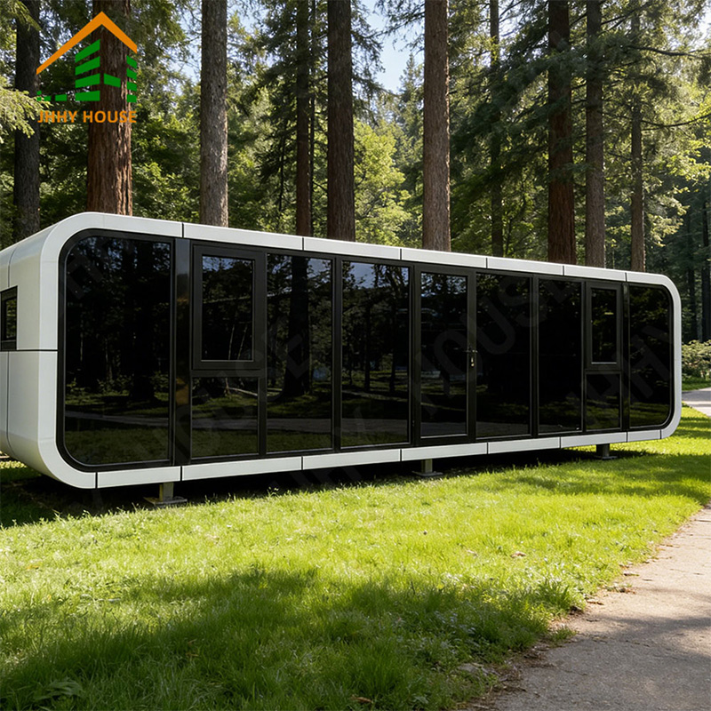 Futuristic curved glass design Floor-to-ceiling panoramic windows Eco-friendly and energy-efficient Fully assembled and transportable Space-optimized modern interior Weather-resistant and durable build Low maintenance structure Ideal for home, or office Quick and easy installation Premium luxury finishes